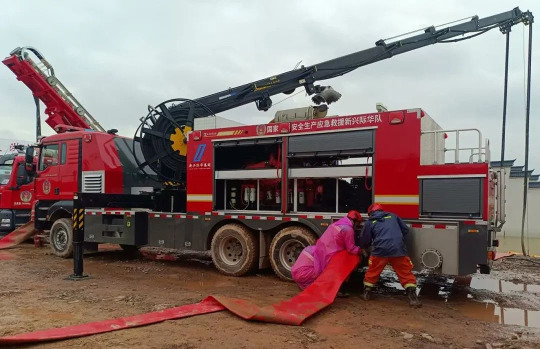 在正式演习前,该吊臂式大流量远程排涝车在其他同行同类产品因操作繁琐、地形影响无法开展作业的情况下,一天时间内连续不断作业10多个小时,实现灌水近30000m³,表现出色。该装备作为工信部自然灾害防治工程化攻关专项的成果之一,由大功率发动机提供动力,系统流量达2160m³/h以上,输送距离2km,操作简单、工况稳定,能连续运转7天7夜不停机,适用于远程消防供水,同时还可应用于城市排涝、矿井排水、抗旱输水等领域。